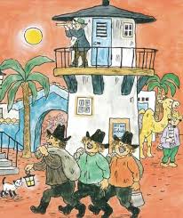 The Norwegian autor Torbjørn Egner traveled to Italy, the South of France, Algeria and Morocco in 1949, and obviously was inspired by what he saw in Fès and in Marrakech.